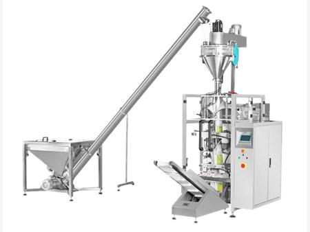 Вертикальная фасовочно-упаковочная линия для упаковки порошкообразных продуктов MK-420D оснащена шнековым загрузочным транспортером и дозатором, а также идеально подходит для упаковки порошков размером частиц 100 меш, таких как сухое молоко, белковый порошок, молотый кофе, мука и т. д.